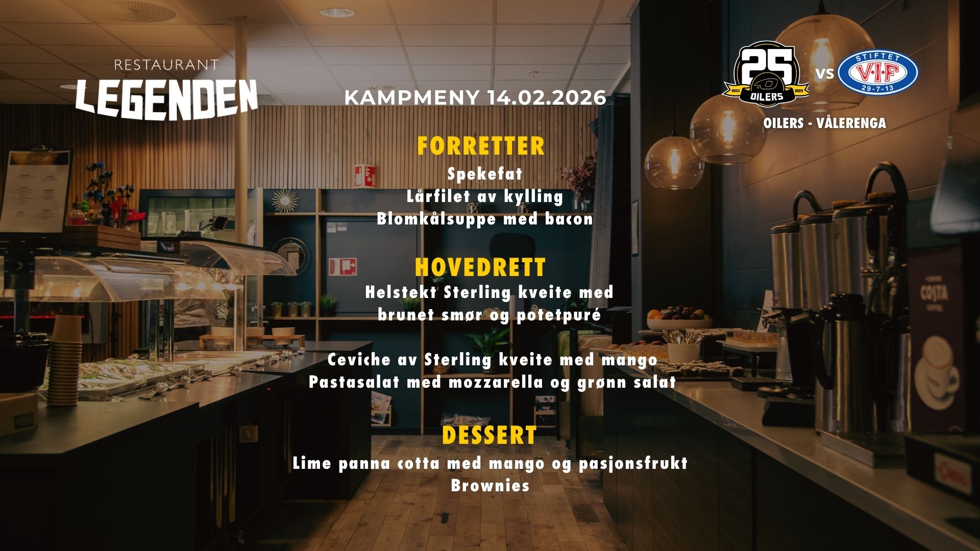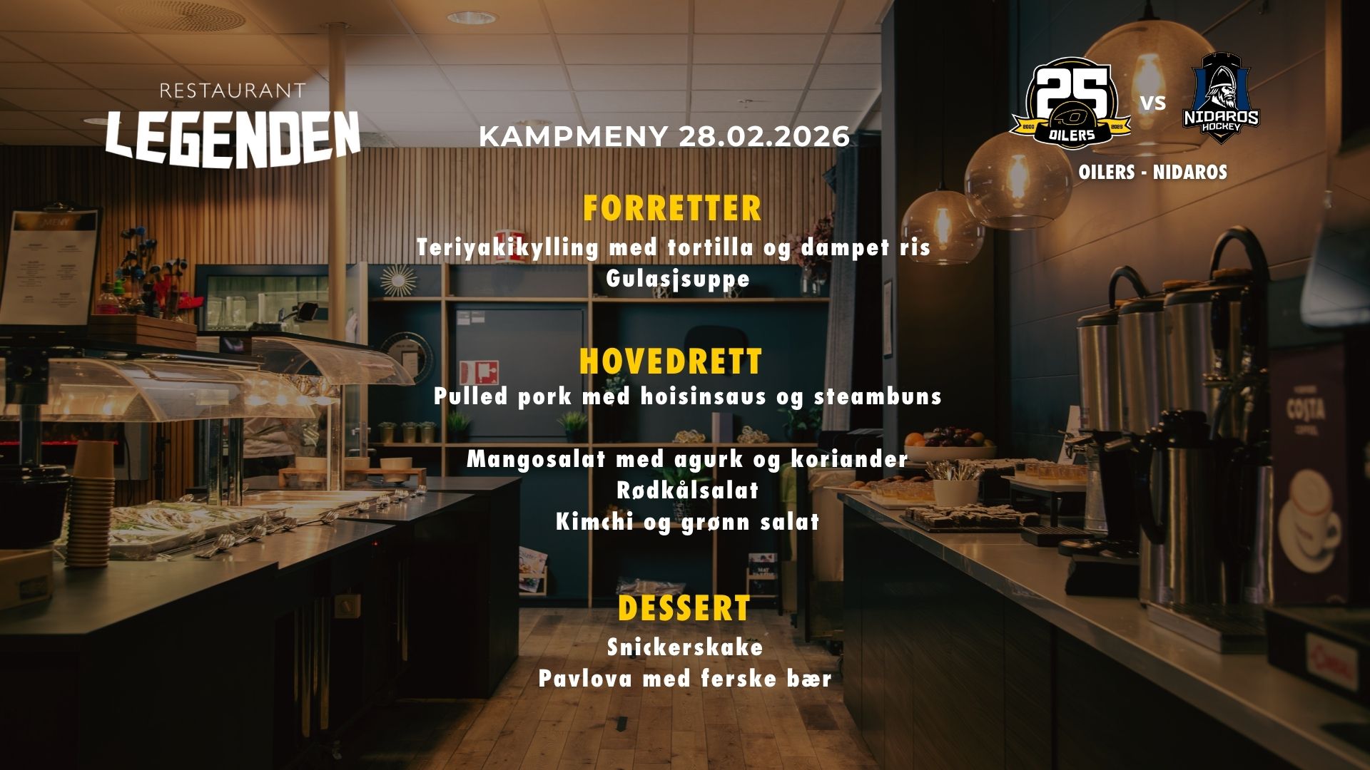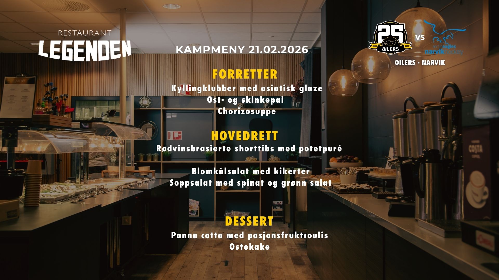 I Restaurant Legenden serverer vi en deilig meny basert på sesongens råvarer – perfekt som opptakt til kampen. Våre kjøkken setter sammen en velsmakende meny, og baren holder et godt utvalg av drikke gjennom hele kvelden.